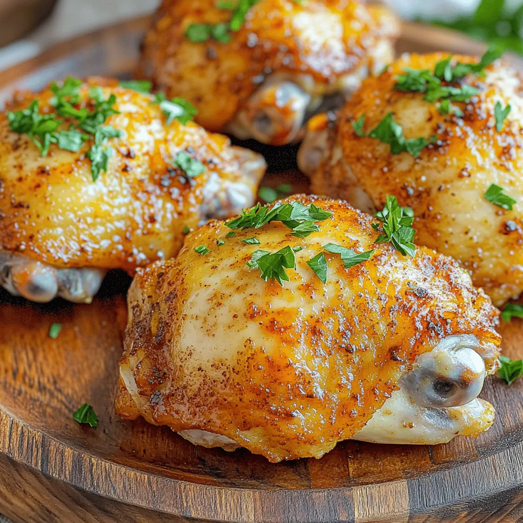 Nimm die Hühnchenschenkel nach dem Garen heraus. Lass sie etwa 5 Minuten ruhen. Das hilft, die Säfte im Fleisch zu halten. Garniere die Schenkel mit frischer, gehackter Petersilie. Das sieht schön aus und gibt extra Geschmack.