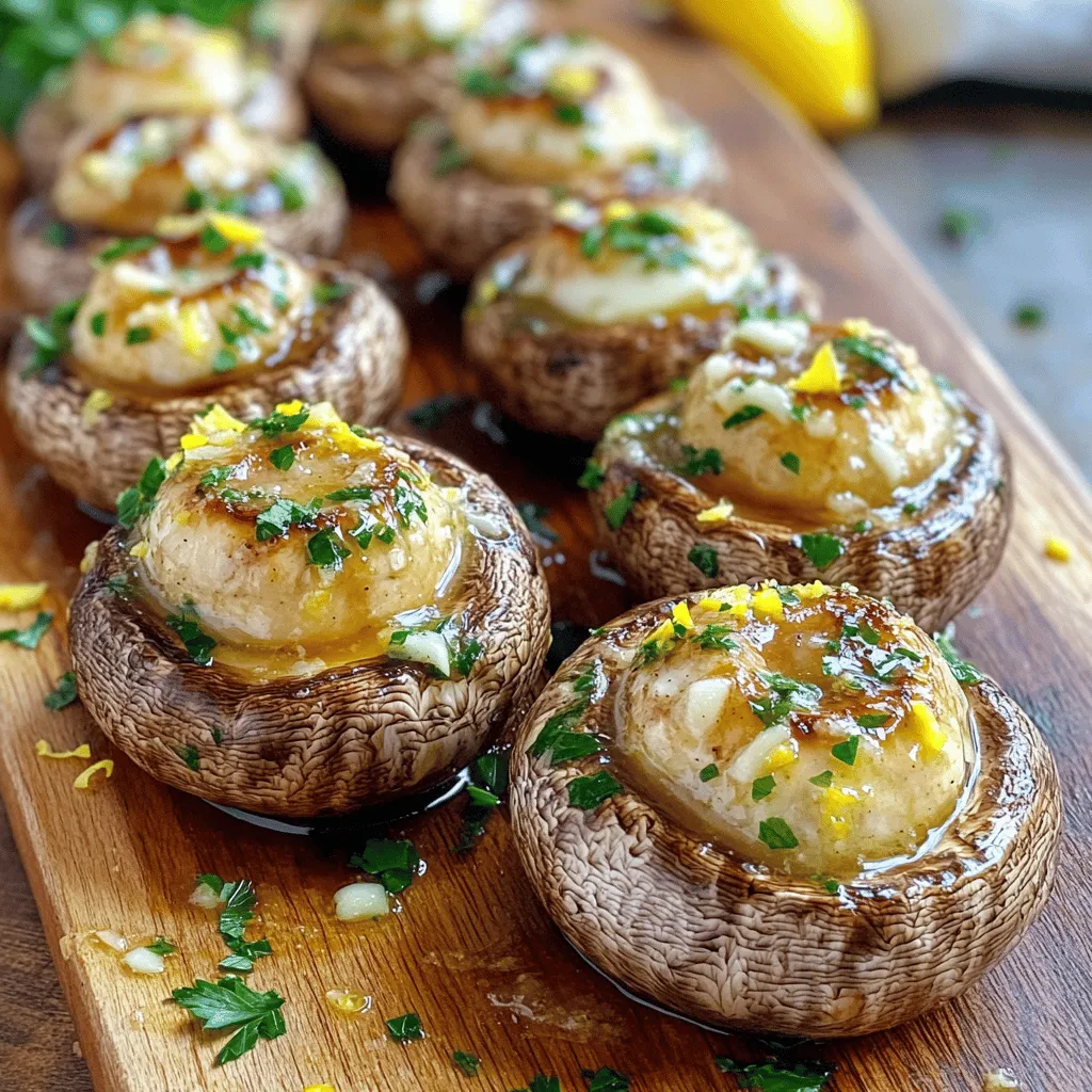 Servieren Sie die Pilze auf einem rustikalen Holzbrett. Fügen Sie frische Petersilie und eine Zitronenscheibe hinzu. Das sieht frisch und einladend aus.
