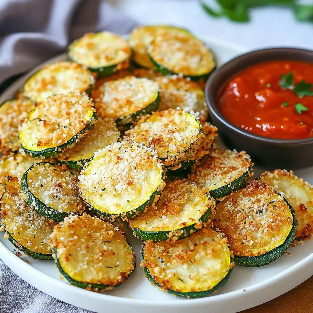Servieren Sie diese knusprigen Zucchini-Chips zusammen mit einer hausgemachten Marinara-Sauce oder Ihrem bevorzugten Dip für zusätzlichen Geschmack.