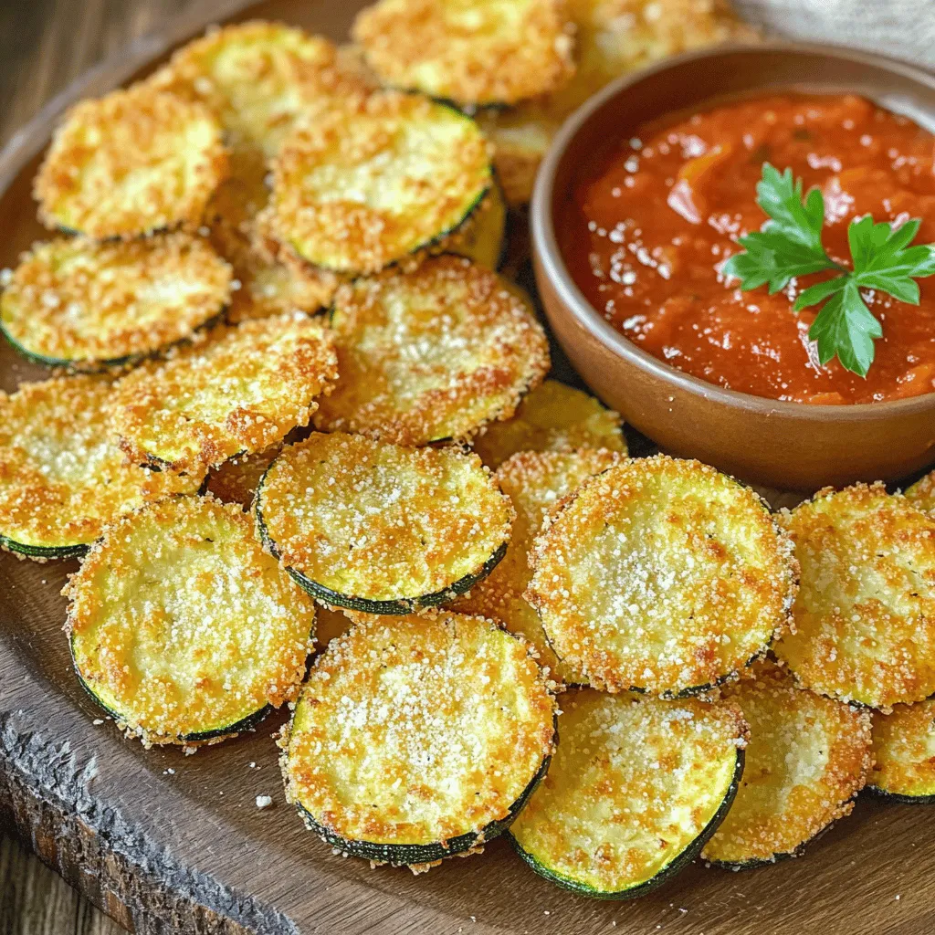 Für eine schöne Präsentation serviere ich die Zucchini-Chips auf einer großen Platte. Du kannst sie mit einer Schale Marinara-Soße oder einem Joghurt-Dip kombinieren. Das bringt zusätzlichen Geschmack. Frische Kräuter wie Petersilie oder Basilikum geben den Chips ein lebendiges Aussehen und einen frischen Geschmack.