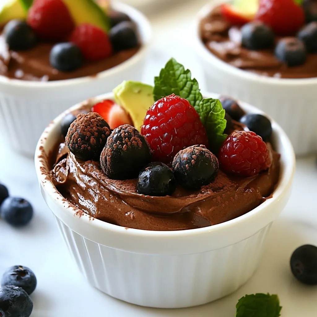 Eine reichhaltige und cremige Schokoladenmousse aus Avocado, perfekt als gesunder Nachtisch.