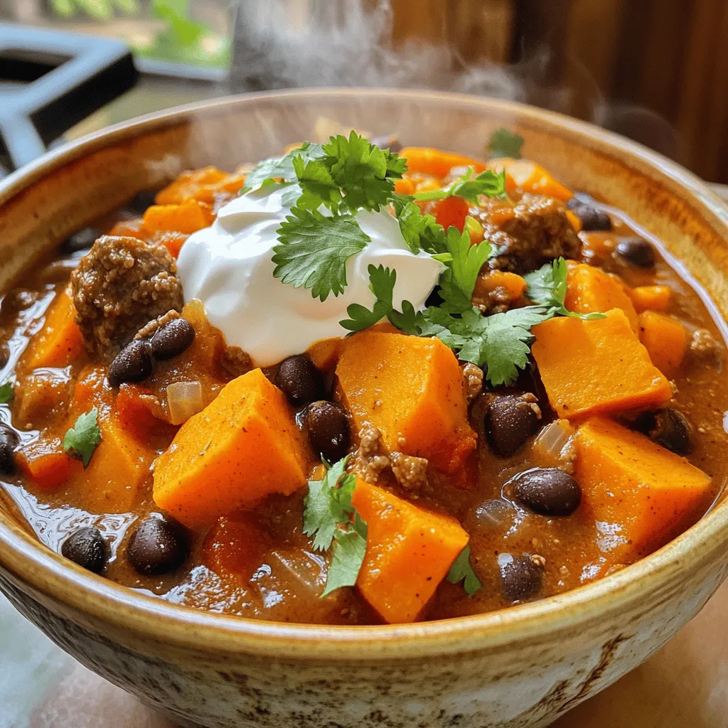 Für dieses Chili ist frisches Gemüse wichtig. Die Süßkartoffeln geben eine natürliche Süße. Die schwarzen Bohnen fügen Protein hinzu. Gewürze wie Chilipulver und Kreuzkümmel bringen den Geschmack. Das Rinderhackfleisch sorgt für eine herzhafte Basis.