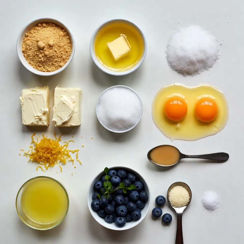 Hauptzutaten für die Blaubeer-Zitronen-Cheesecake-Riegel