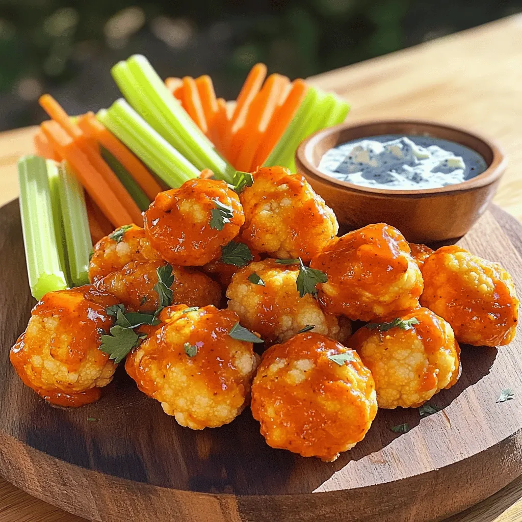 Buffalo Blumenkohlbissen sind knusprige Snacks aus Blumenkohl. Sie sind in einem gewürzten Teig gehüllt und dann gebacken. Diese Bissen sind knusprig und würzig. Oft werden sie mit einer scharfen Sauce serviert. Man genießt sie als Appetizer oder Hauptgericht.