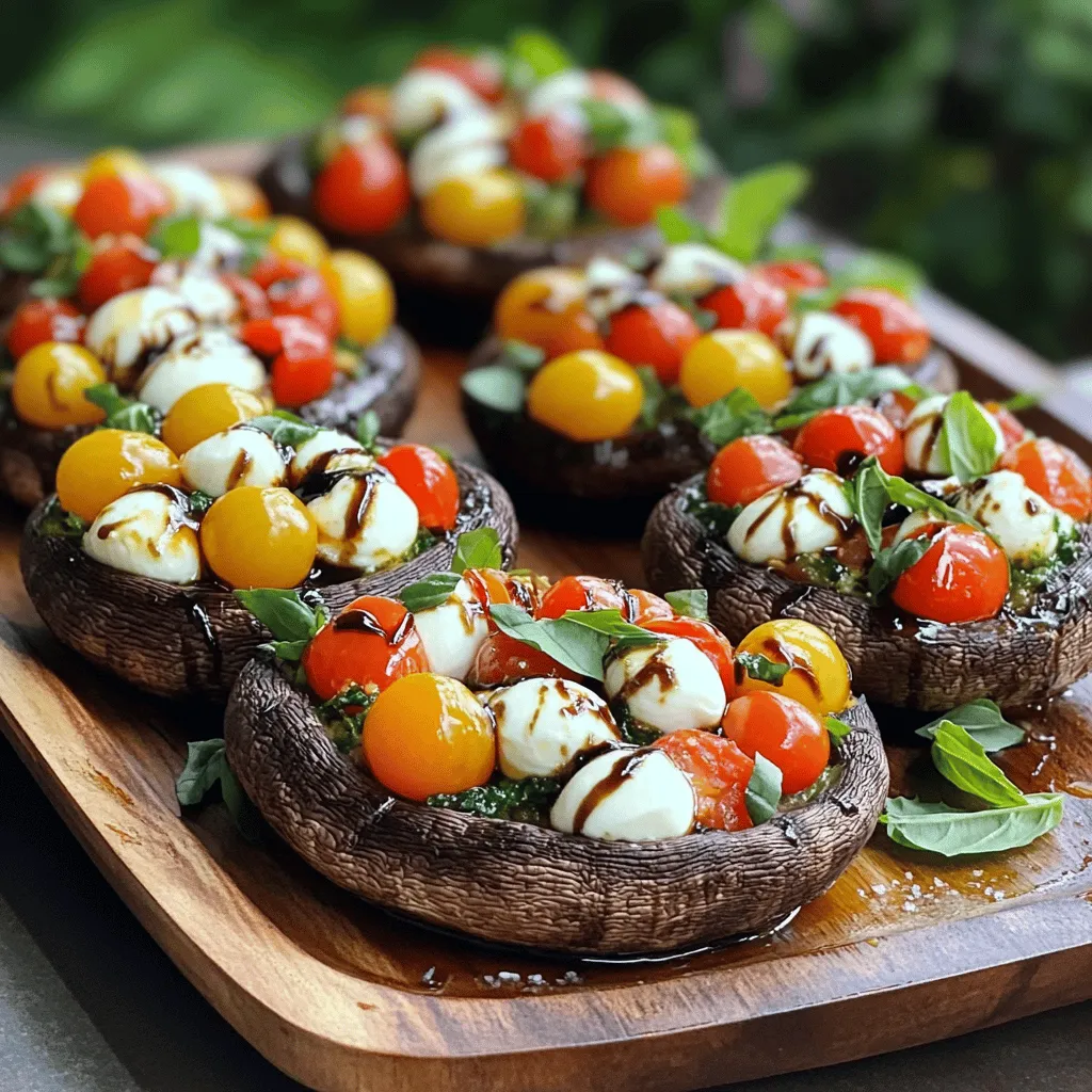 Um die besten Caprese gefüllten Portobellos zu machen, wähle frische Zutaten. Achte auf die Kirschtomaten; sie sollten fest und rot sein. Die Mozzarella-Perlen sollten weich und frisch sein. Die Portobello-Pilze sollten groß und prall sein. Vor dem Backen, bestreiche die Pilzkappen gut mit Olivenöl. So bleiben sie saftig und bekommen einen tollen Geschmack. Die Backzeit ist wichtig. Achte darauf, dass die Pilze zart sind und der Käse sprudelt.