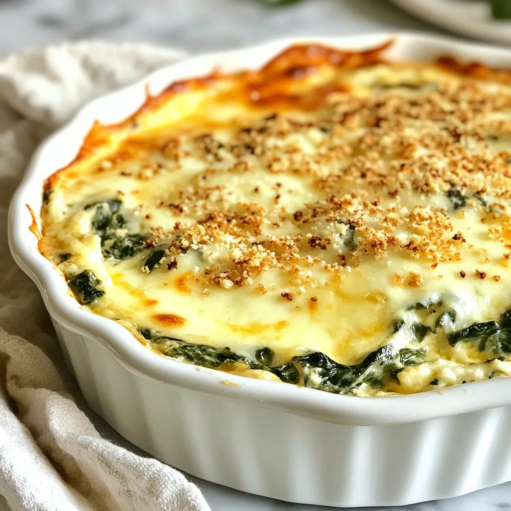 Ein köstlicher Auflauf mit frischem Spinat und verschiedenen Käsesorten.
