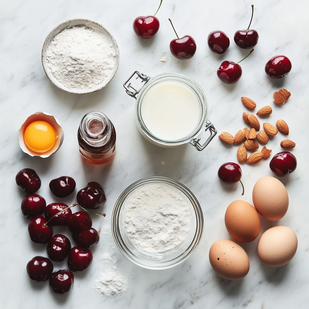 Diese Zutaten machen das Clafoutis süß und saftig. Die frischen Kirschen bringen viel Geschmack. Die Eier und Milch geben einen schönen, weichen Teig.