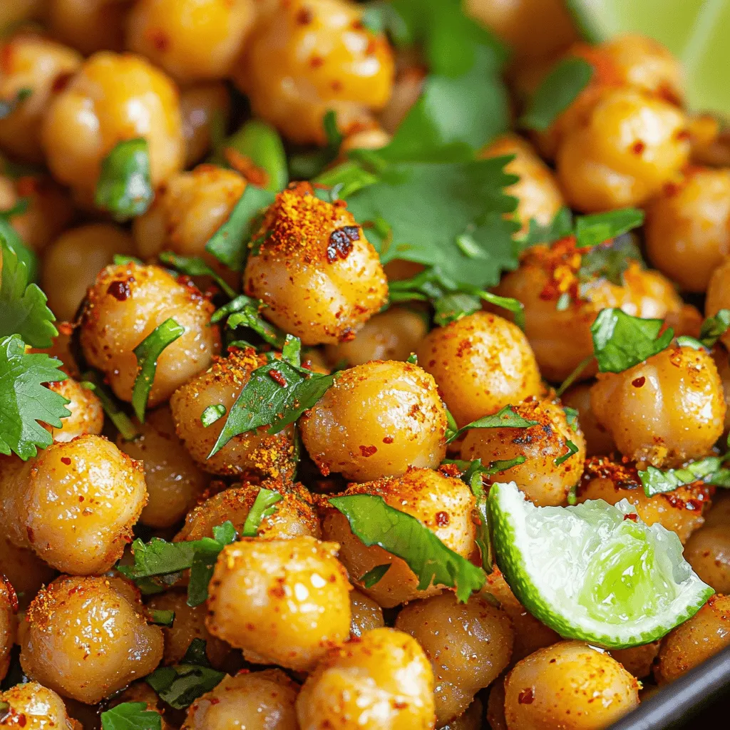 Um die perfekte Konsistenz zu erreichen, achten Sie darauf, dass die Kichererbsen gut trocken sind. Wenn sie feucht sind, werden sie nicht knusprig. Garen Sie die Kichererbsen bis sie goldbraun sind. Wenn Sie sie zu lange garen, können sie verbrennen. Nach dem Garen lassen Sie die Kichererbsen ein paar Minuten abkühlen. So bleiben sie knusprig. Garnieren Sie sie nach Wunsch mit frischem Koriander und einem Spritzer Limettensaft.
