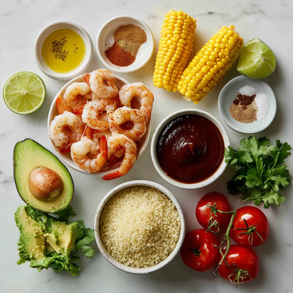 Ich füge frisches Gemüse hinzu. Avocado ist cremig und passt perfekt zu den Garnelen. Kirschtomaten geben eine süße Note und Farbe. Mais bringt zusätzliche Süße und Textur. Diese Beilagen machen die Schüssel bunt und gesund.