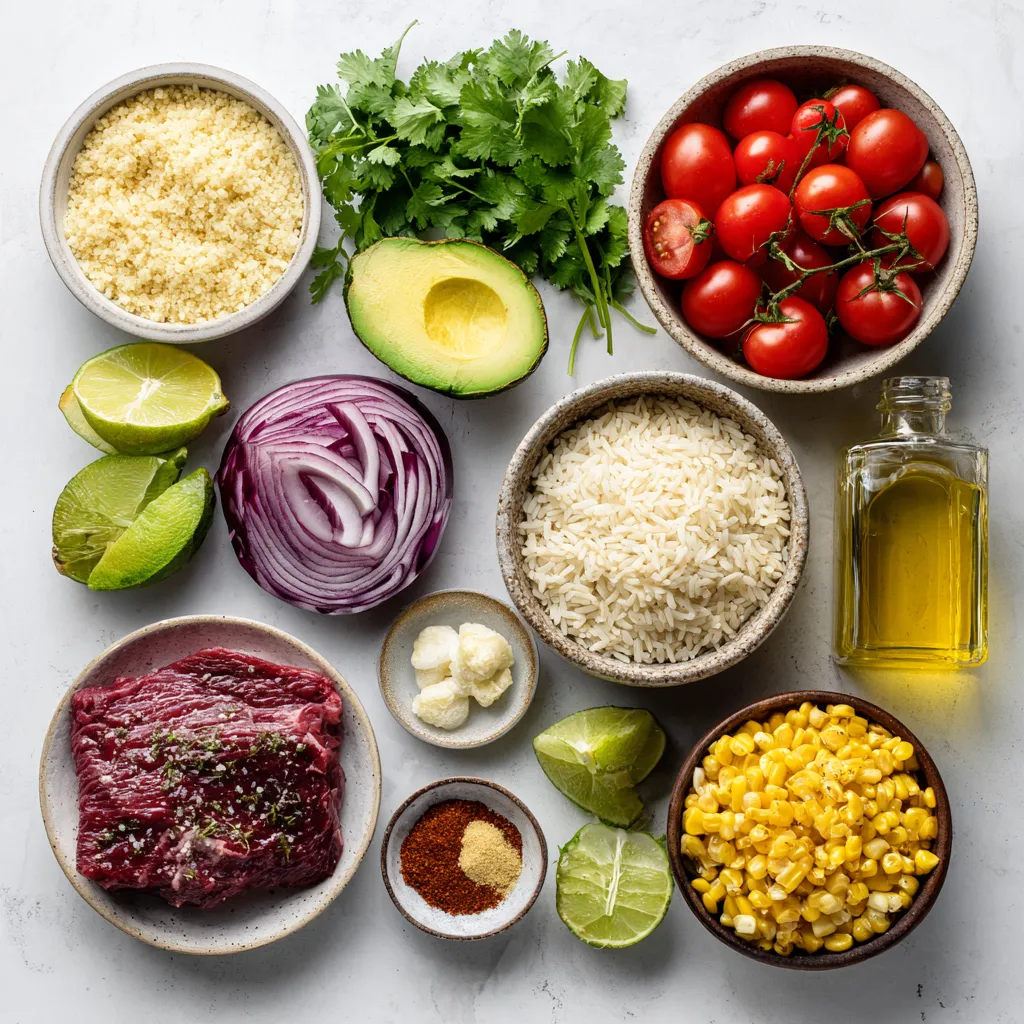 Hauptzutaten für die Koriander-Limetten-Steak-Bowls