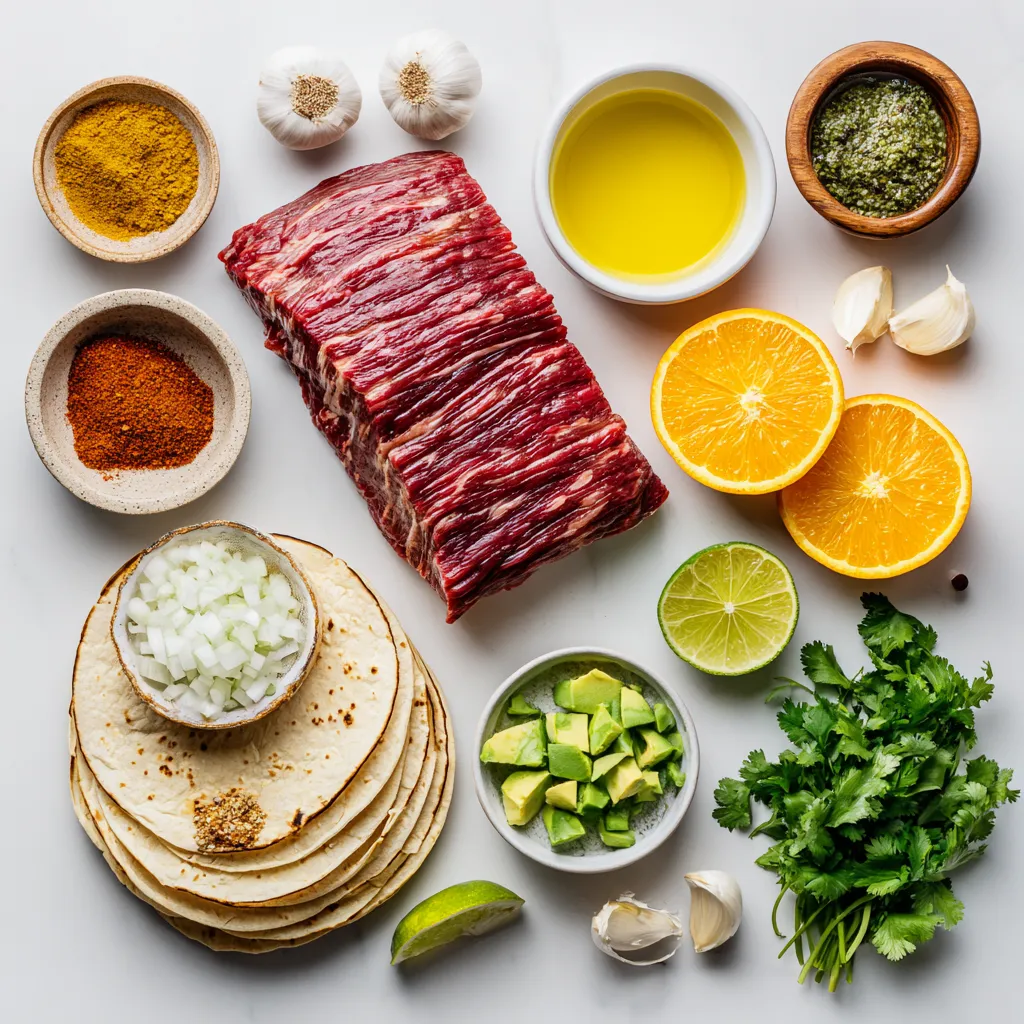 Diese Garnituren machen das Gericht lebendig. Frischer Koriander sorgt für eine schöne Farbe. Maistortillas sind perfekt, um das Steak einzuwickeln. Die Beläge aus Zwiebeln und Avocado sind ein Muss. Limettenviertel verleihen dem Gericht den letzten Schliff. So wird jeder Biss besonders lecker.