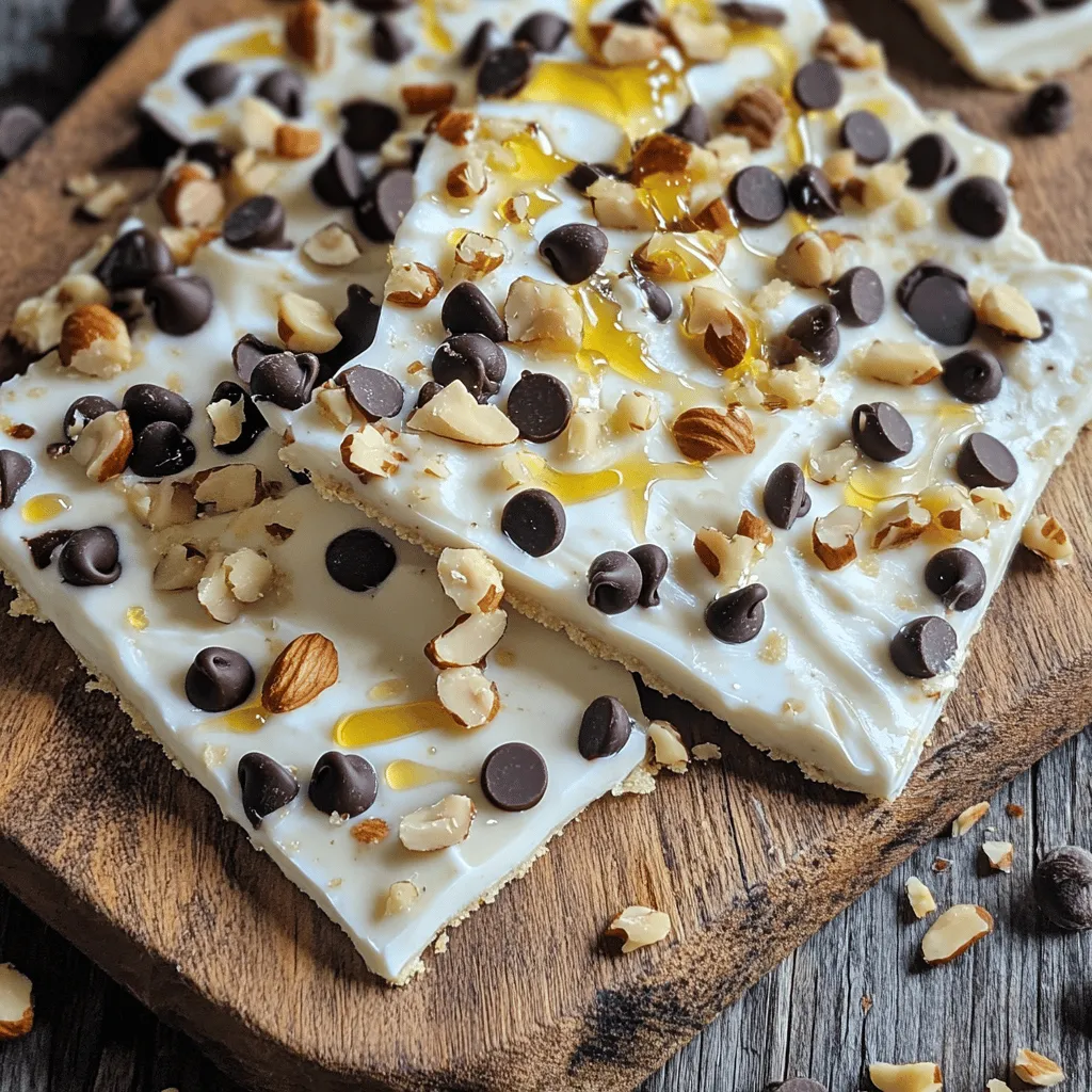 Diese Zutaten sind wichtig, um die perfekte Mischung zu erzielen. Der griechische Joghurt gibt eine cremige Basis. Honig oder Ahornsirup süßen den Joghurt. Vanilleextrakt bringt Geschmack. Schokoladenstückchen fügen Süße und Textur hinzu. Mandelmehl hilft, die Konsistenz zu verbessern, und Nüsse bieten einen knusprigen Biss.