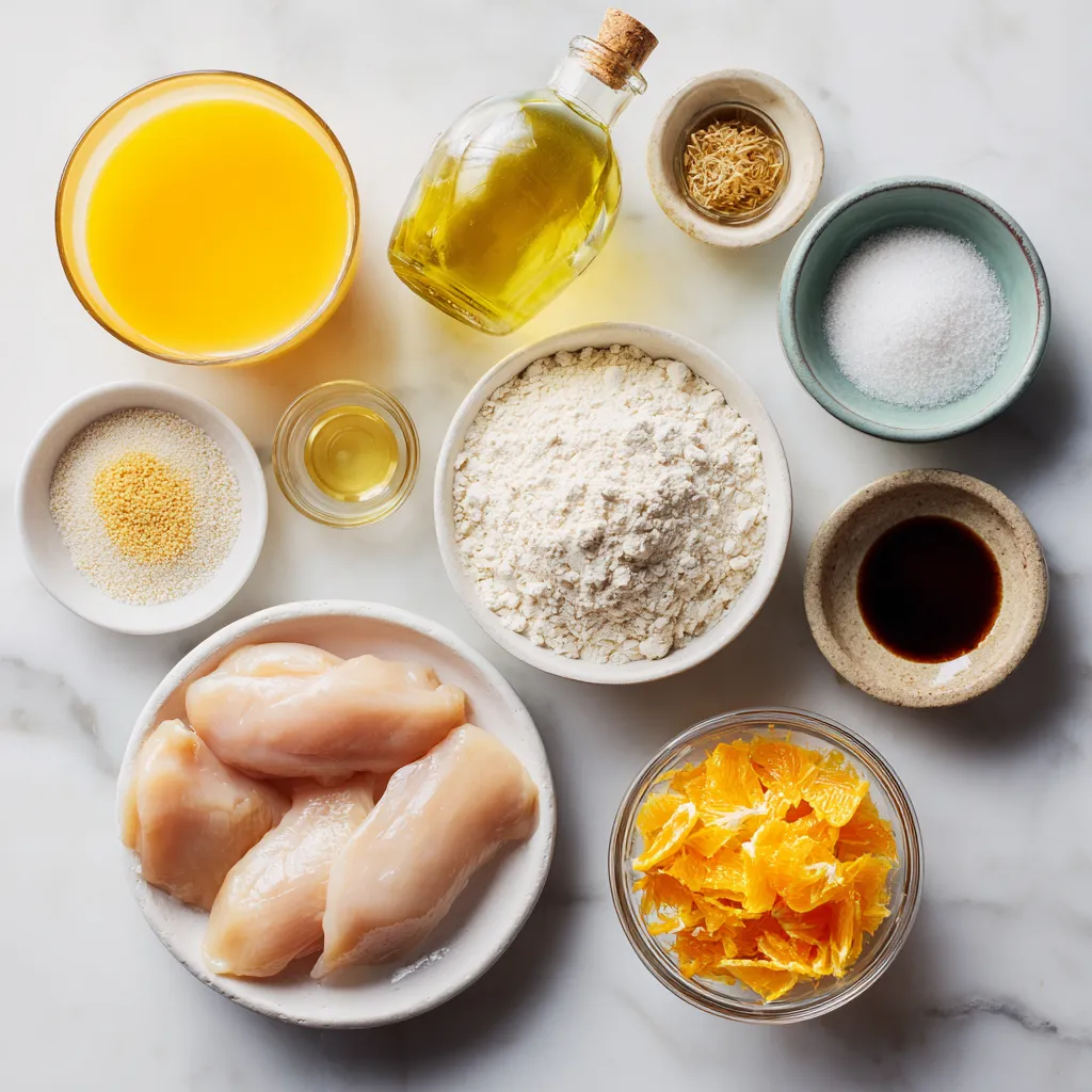 Für das Copycat Panda Express Orange Chicken brauchst du folgende Hauptzutaten: