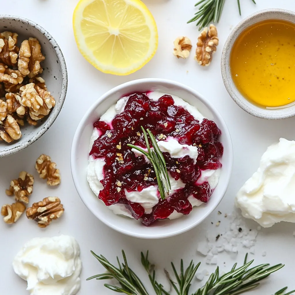 Ein köstlicher Dip aus Frischkäse, Preiselbeeren und Rosmarin, perfekt für Snacks.