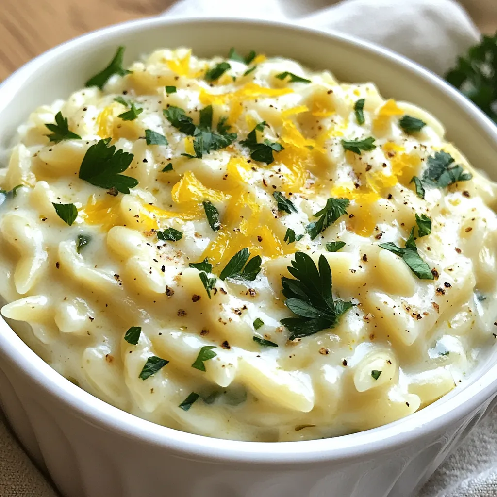 Orzo ist eine kleine, reisförmige Pasta. Man verwendet es oft in Salaten oder Suppen. Es hat eine zarte Textur und nimmt Aromen gut auf. In diesem Rezept ist Orzo die Basis für das cremige Gericht. Es kocht schnell und macht das Essen leicht und lecker. Sie können es auch als Beilage zu Fleisch oder Gemüse servieren.