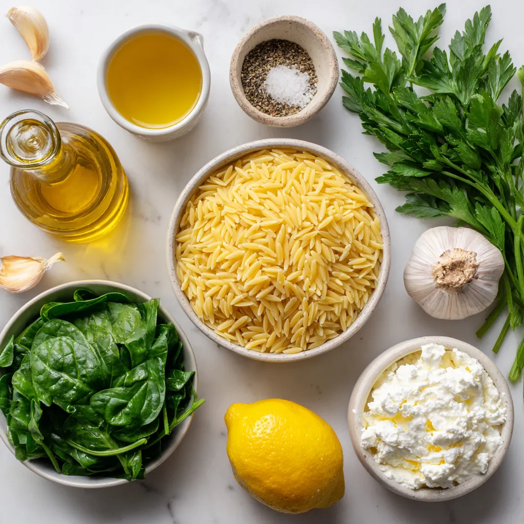 Keyword Boursin, creamy, lemon, orzo, spinach