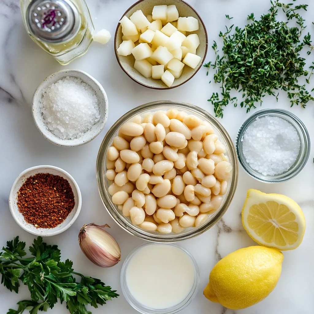 - 2 Tassen gekochte weiße Bohnen (Cannellini oder Navy-Bohnen)