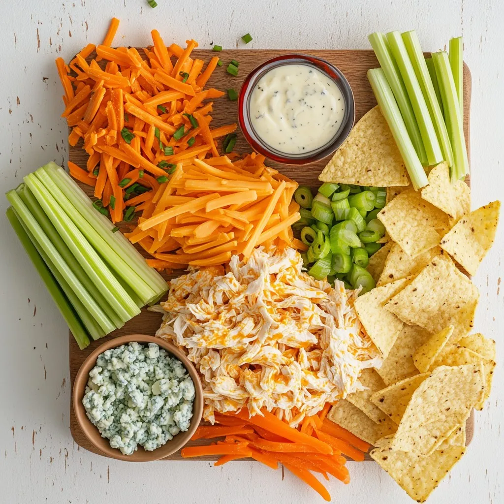 Diese Zutaten geben dem Dip seinen tollen Geschmack und die cremige Konsistenz. Das zerkleinerte Hähnchen sorgt für die proteinreiche Basis. Frischkäse macht den Dip schön cremig. Buffalo-Sauce bringt die Schärfe, die jeder liebt. Cheddar-Käse fügt einen herzhaften Geschmack hinzu, während Ranch-Dressing die Aromen ausgleicht.