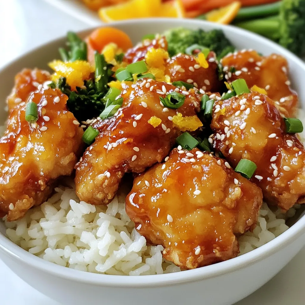 Ein köstliches und knuspriges Orangenhähnchen mit einer süßen und würzigen Sauce.