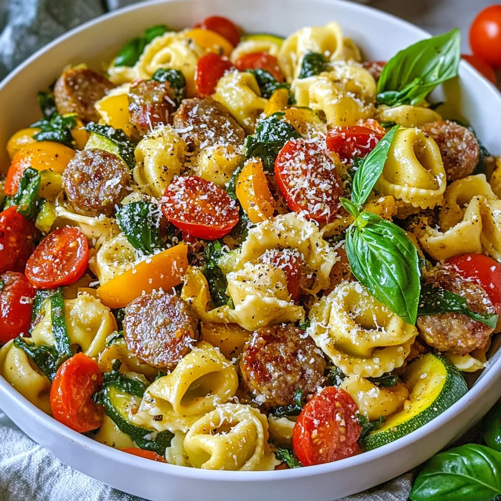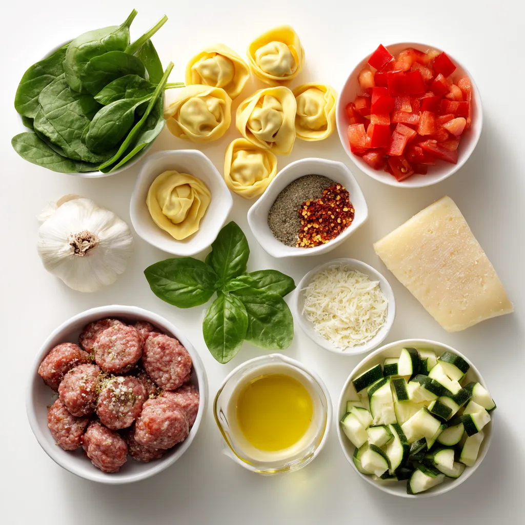 Wähle frische Zutaten für den besten Geschmack. Achte darauf, dass die Wurst von guter Qualität ist. Süße italienische Wurst bringt viel Aroma. Bei den Tortellini kannst du frische wählen, sie sind zarter. Kirschtomaten sollten reif und saftig sein. Die Paprika und Zucchini sollten knackig und farbenfroh sein. Frischer Spinat gibt deinem Gericht eine schöne Farbe und Nährstoffe.