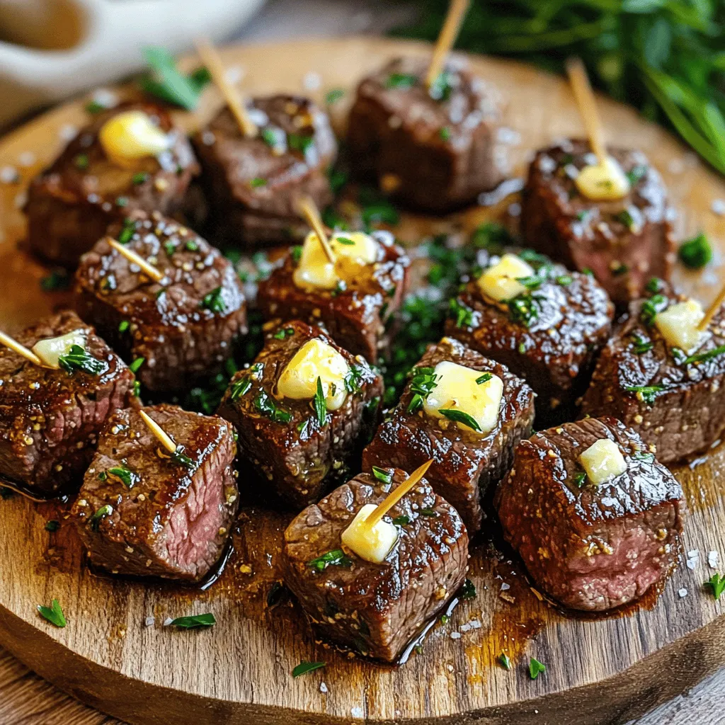 Die Steak Bites schmecken gut mit vielen Beilagen. Röste Gemüse wie Paprika, Zucchini oder Karotten im Ofen. Diese Farben und Geschmäcker bringen Freude auf den Teller. Ein frischer Salat ist auch eine leichte Beilage. Du kannst einen einfachen grünen Salat mit einem leichten Dressing machen. Serviere auch kleine Brötchen oder Baguette, um die köstliche Knoblauchbutter aufzusaugen.