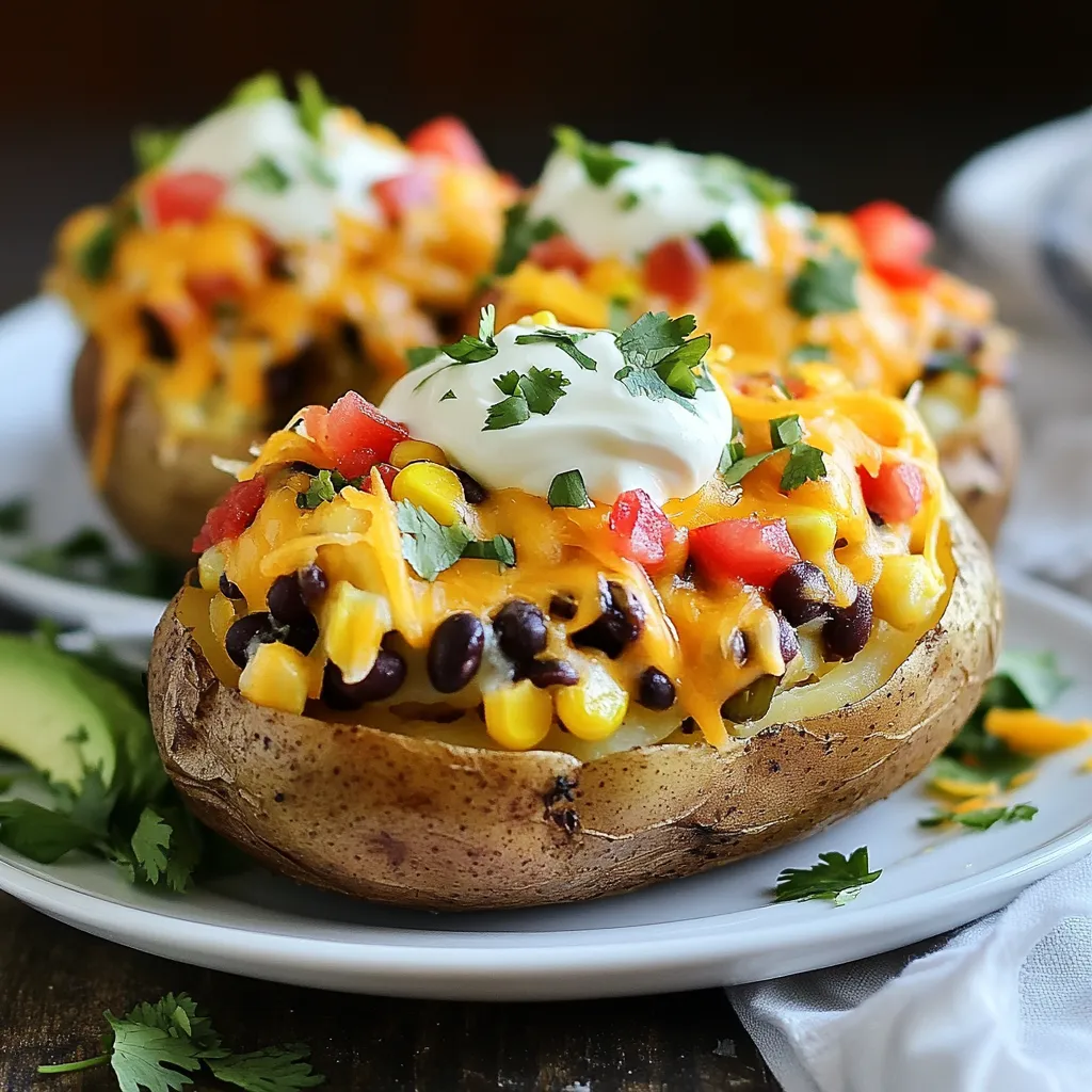 Leckere, gefüllte Kartoffeln mit einer würzigen Mischung aus schwarzen Bohnen, Mais und Käse.