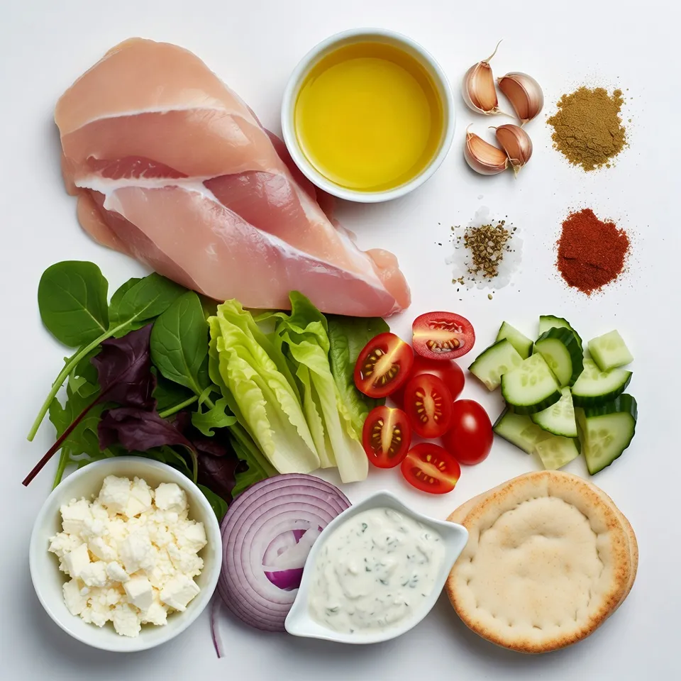 Für die Gyro-Bowls brauchst du frische und einfache Zutaten. Hier sind die Hauptzutaten: