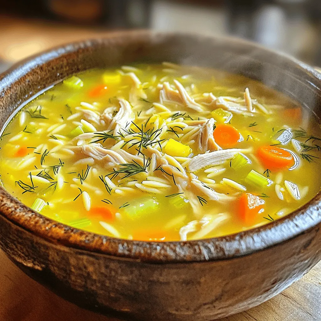 Für die Griechische Zitronenhühnchensuppe braucht man frische und gute Zutaten. Das gekochte Hühnchen bringt viel Geschmack. Die Zwiebel und der Knoblauch geben der Suppe ein tolles Aroma. Karotten und Sellerie fügen Süße und Textur hinzu. Hühnerbrühe sorgt für die Basis und macht die Suppe herzhaft.