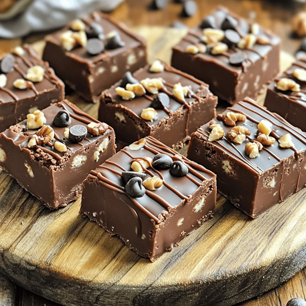 Die Fudge sieht toll aus auf einem Dessertständer. Du kannst sie auch in kleine Stücke schneiden und in einer hübschen Schüssel servieren. Garniere sie mit gehackten Nüssen oder Schokoladenstückchen. Wenn du etwas Frisches möchtest, serviere sie mit einer frischen Frucht. Himbeeren oder Erdbeeren passen gut dazu.