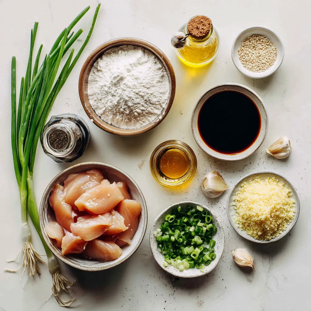 Hauptzutaten für Honig-Sesam-Hühnchen