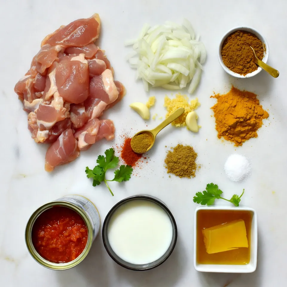 Diese Zutaten sorgen für ein reichhaltiges und aromatisches Gericht. Hähnchenschenkel sind saftig und zart. Zwiebeln, Knoblauch und Ingwer bringen Tiefe. Tomaten und Kokosmilch machen das Gericht cremig.
