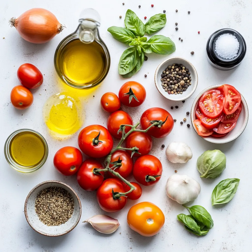 Um die perfekte cremige Tomaten-Basilikum-Suppe zu machen, brauchst du: