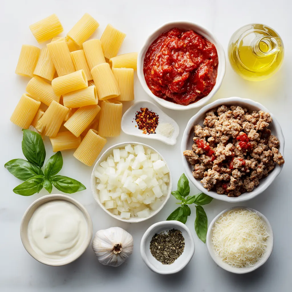 Rigatoni ist eine dicke Pasta mit Rillen. Diese Struktur hält die Sauce gut. Sie ist perfekt für herzhafte Gerichte. Ich liebe es, sie mit italienischer Wurst zu kombinieren. Diese Wurst hat einen tollen Geschmack und macht die Sauce reichhaltig. Passierte Tomaten sind wichtig. Sie geben der Sauce die Basis.