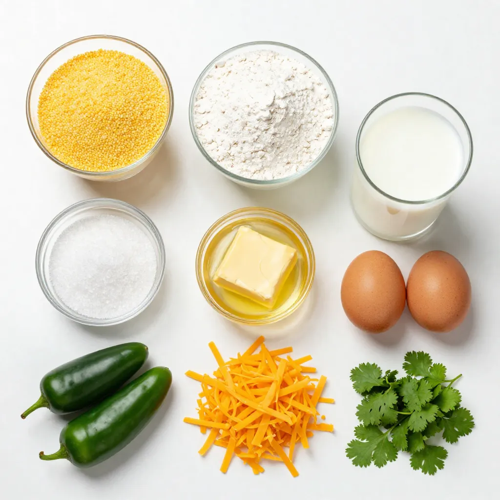 Für das perfekte Jalapeño Cheddar Cornbread brauchst du folgende Hauptzutaten: