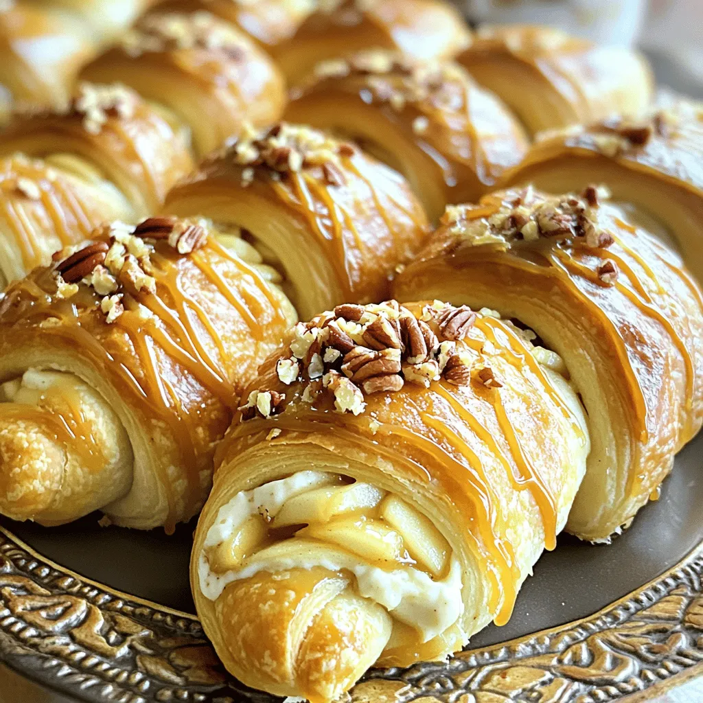 Um die Füllung für die Karamell Apfel Cheesecake Croissant Rollen perfekt zu machen, beginne mit zimmerwarmem Frischkäse. Das sorgt für eine glatte, cremige Konsistenz. Mische ihn gut mit Puderzucker und Vanilleextrakt. Dies gibt der Füllung einen süßen und aromatischen Geschmack. Füge dann die fein gehackten Äpfel, Zimt und Karamellsauce hinzu. Achte darauf, die Äpfel klein zu schneiden. So verteilen sie sich besser und die Füllung bleibt weich. Wenn du Nüsse magst, kannst du gehackte Pekannüsse oder Walnüsse hinzufügen. Sie geben einen tollen Crunch.