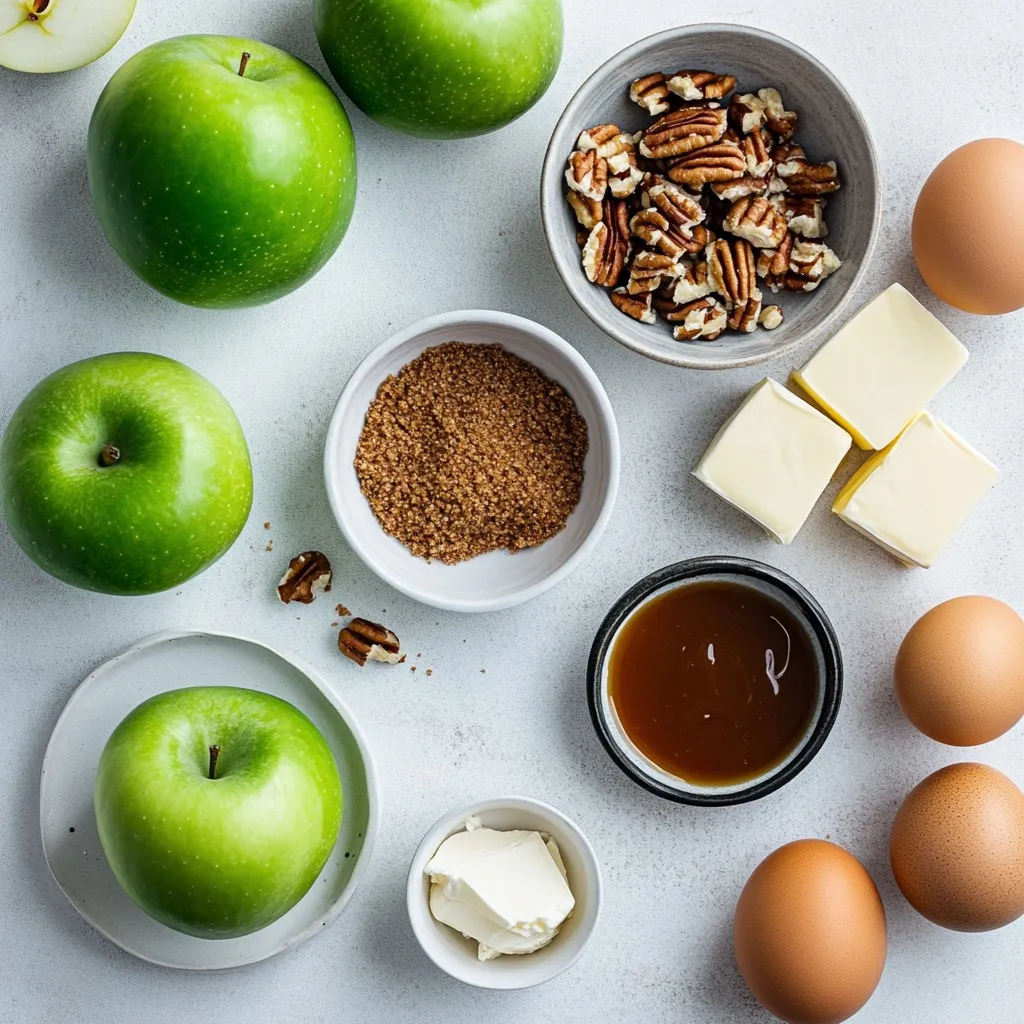Hauptzutaten für die Karamell-Apfel-Käsekuchen-Riegel