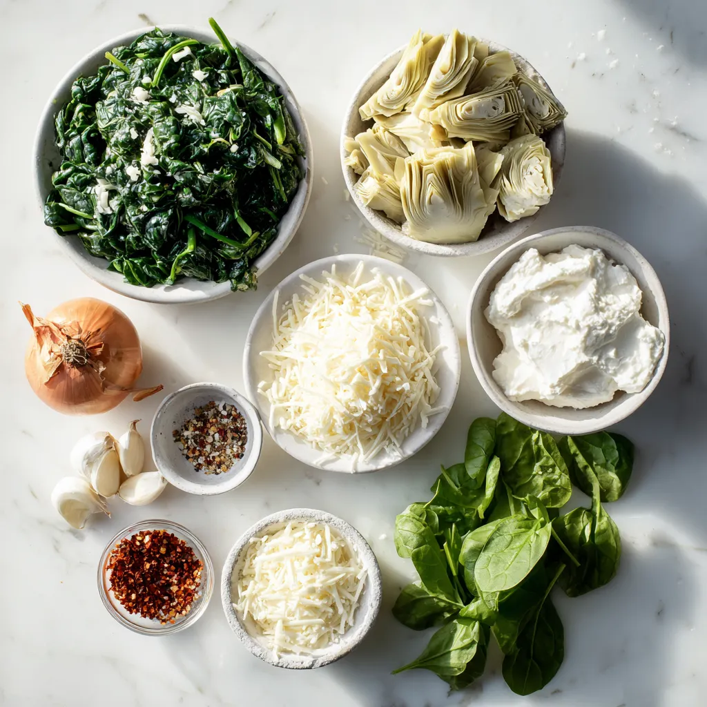 Hauptzutaten für den Käse-Spinat-Artischocken-Dip