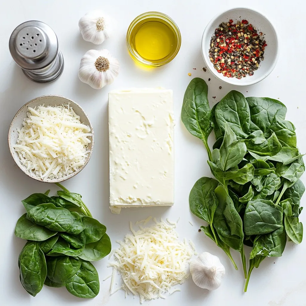 Hauptzutaten für Käse-Spinat gefüllte Hähnchenbrust