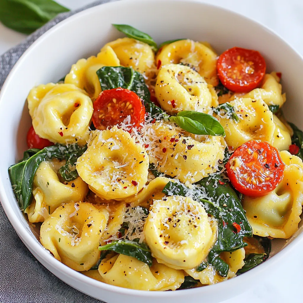 Geben Sie nun die gekochten Tortellini in die Pfanne. Mischen Sie alles gut durch, damit die Tortellini die Aromen aufnehmen. Streuen Sie ½ Tasse geriebenen Parmesan über die Mischung. Rühren Sie weiter, bis der Käse schmilzt und die Tortellini umhüllt. Fügen Sie nach Geschmack rote Pfefferflocken, Salz und Pfeffer hinzu. Genießen Sie den köstlichen Duft, der die Küche erfüllt!