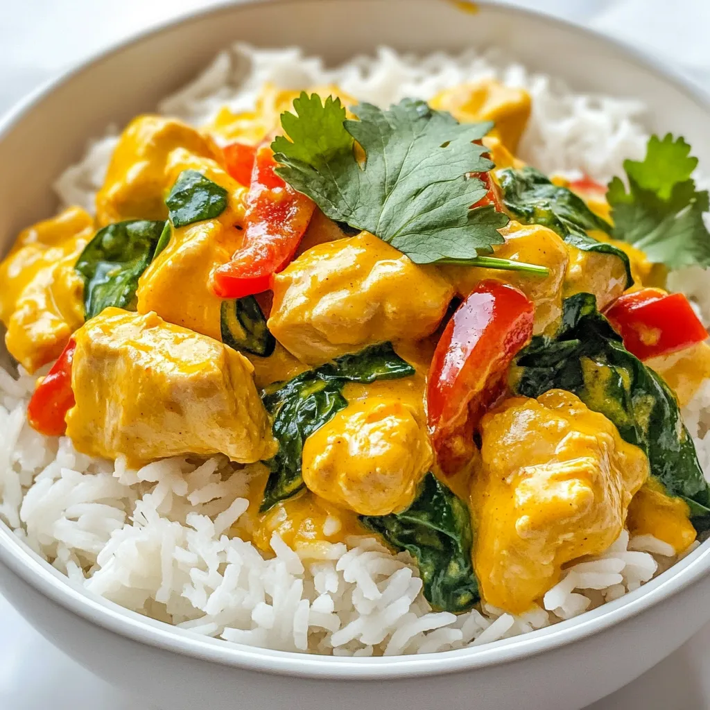 Um Kokosnuss-Hühnchen-Curry perfekt zuzubereiten, sind einige Techniken wichtig. Zuerst braten Sie die Zwiebeln richtig an. Das macht sie süß und aromatisch. Achten Sie darauf, das Hühnchen goldbraun zu braten, bevor Sie die Currypaste hinzufügen. So bleibt das Fleisch saftig. Das Köcheln mit Kokosmilch ist entscheidend. Es sorgt für einen reichhaltigen Geschmack. Fügen Sie die Spinatblätter erst am Ende hinzu, damit sie frisch bleiben.
