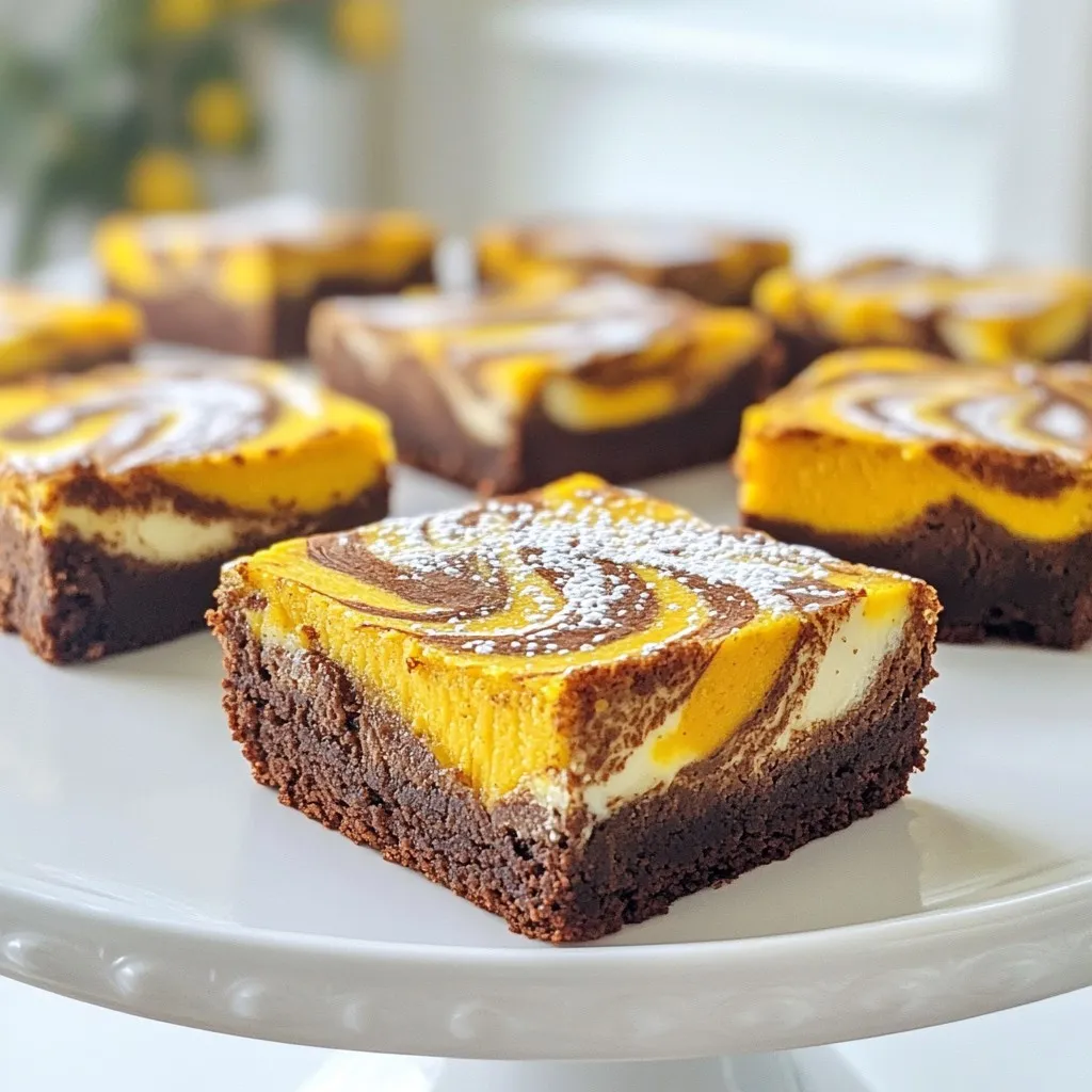 Leckere Brownies mit einer marmorierten Kürbis- und Frischkäsefüllung.