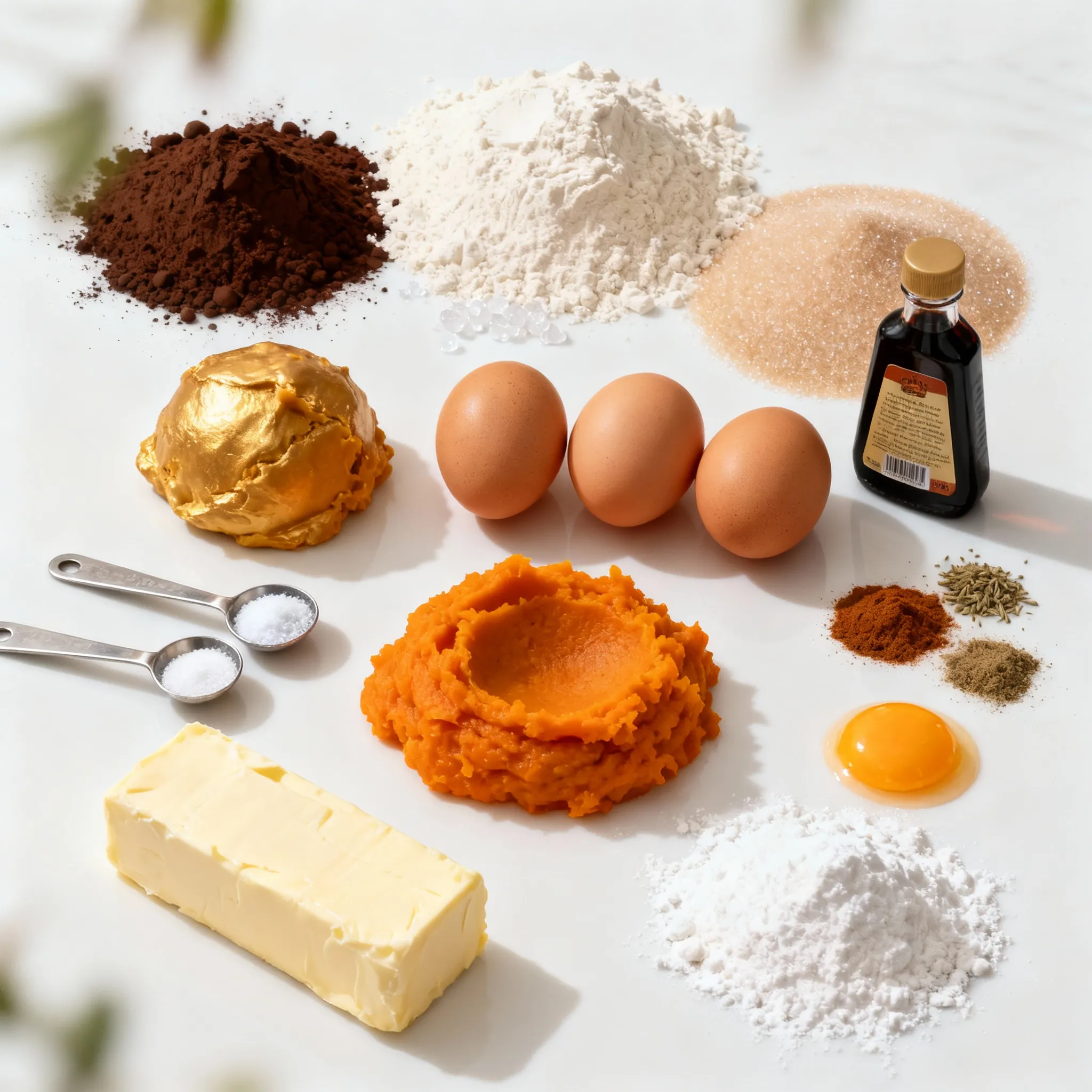 Diese Zutaten machen die Brownies schön schokoladig und saftig. Das Kürbispüree bringt eine tolle Textur und einen feinen Geschmack.