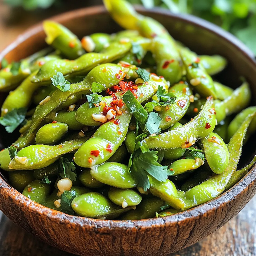 Die Präsentation ist wichtig! Serviere die Edamame in einer schönen Schüssel. Füge einige frische Korianderblätter hinzu. Das sieht nicht nur toll aus, sondern bringt auch Frische. Ein paar Limettenschnitze daneben geben Farbe und zusätzlichen Geschmack. So wird dein Snack nicht nur lecker, sondern auch ein echter Hingucker!