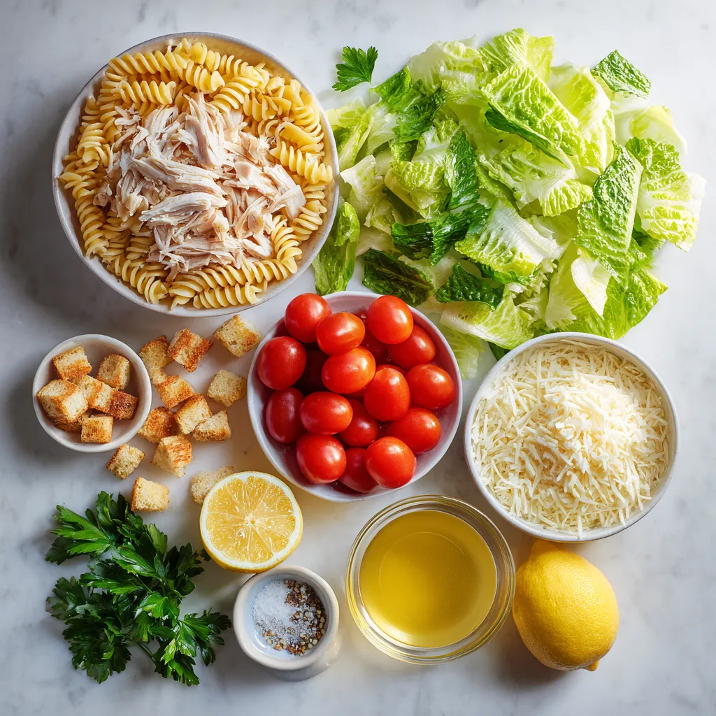 Für den Chicken Caesar Pasta Salad benötigst du einige einfache, aber schmackhafte Zutaten: