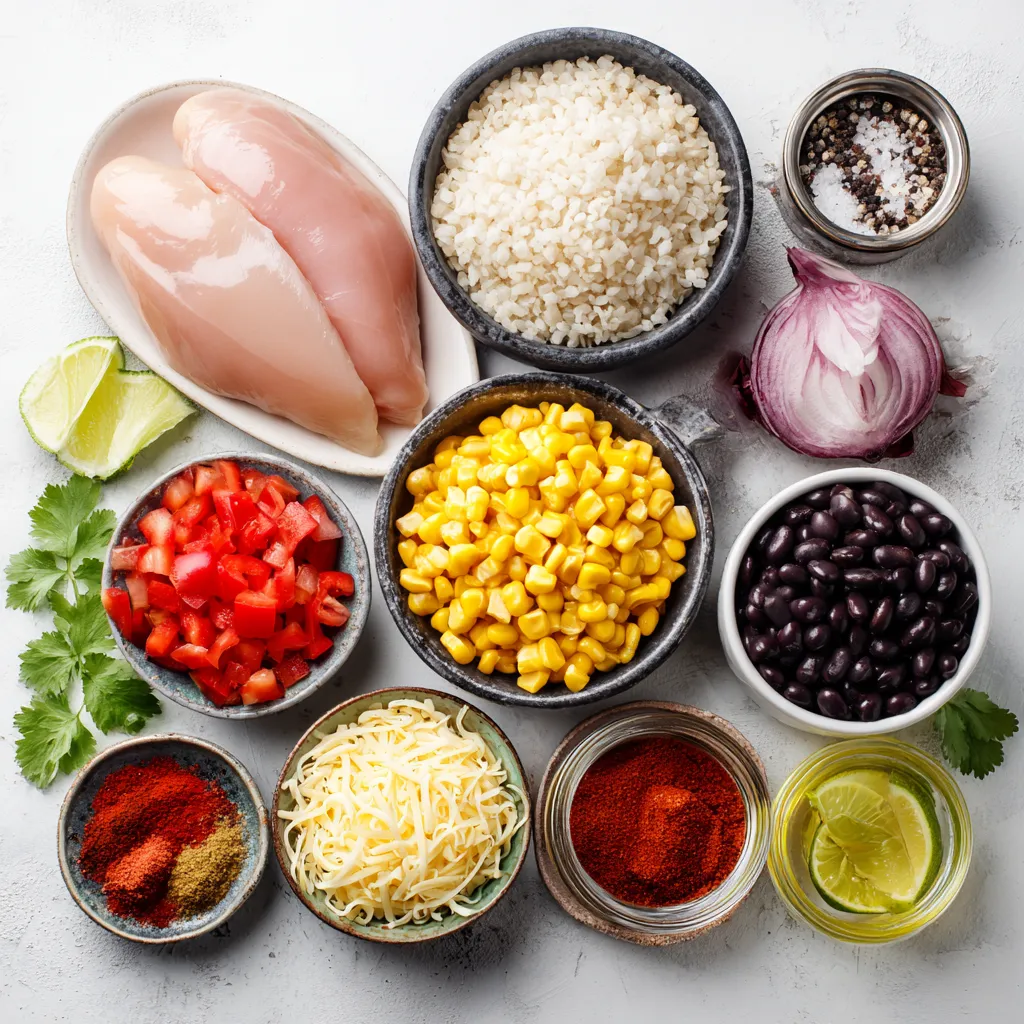Hauptzutaten für Slow Cooker Chicken Burrito Bowls