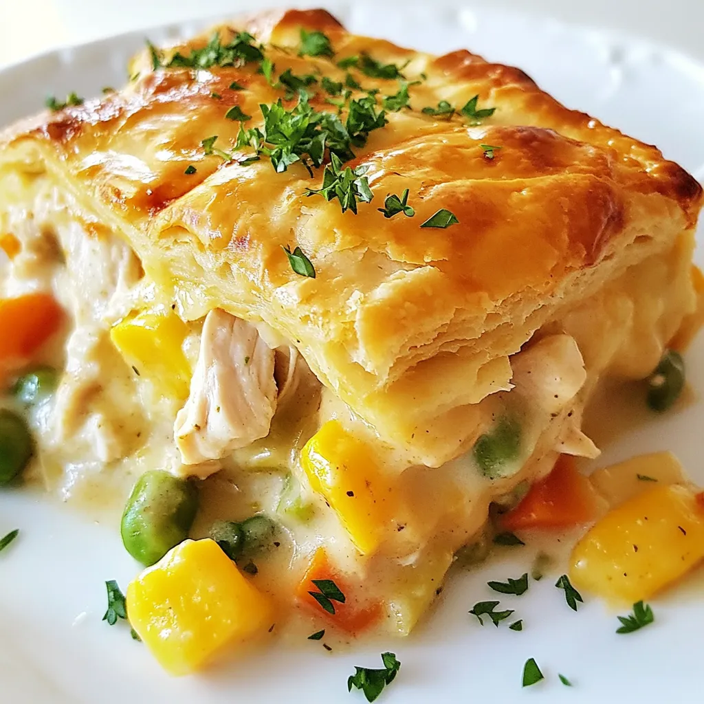 Ein herzhaftes und wärmendes Gericht mit zerrupftem Hähnchen und einem knusprigen Croissant-Teig.