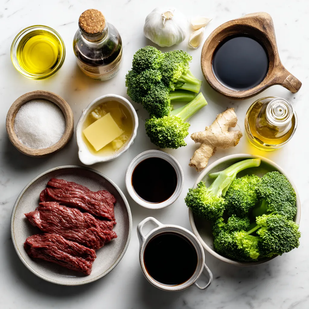 Diese Zutaten bilden die Basis deines Gerichts. Das Rindfleisch sollte mager sein. Achte darauf, dass der Brokkoli frisch und knackig ist.