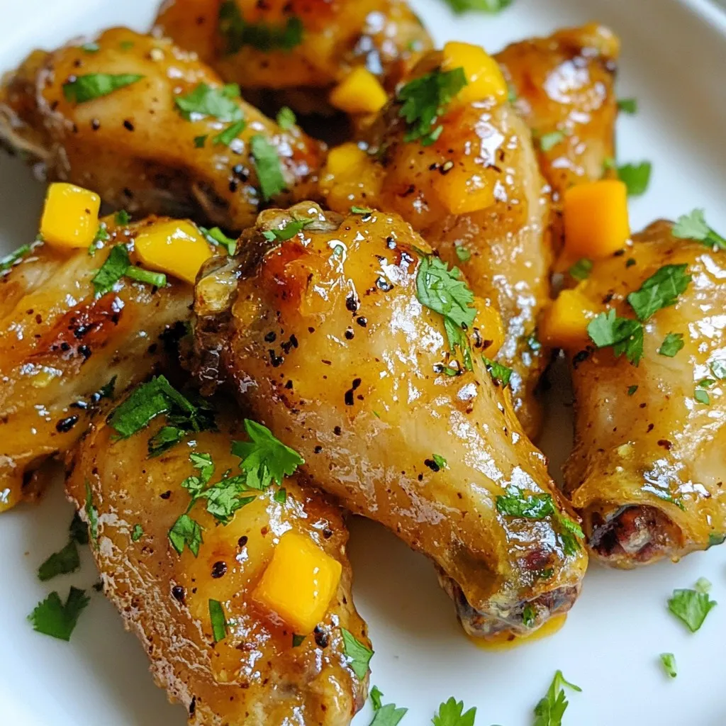 Leckere, würzige Hähnchenflügel mit einer fruchtigen Mango-Habanero-Marinade.