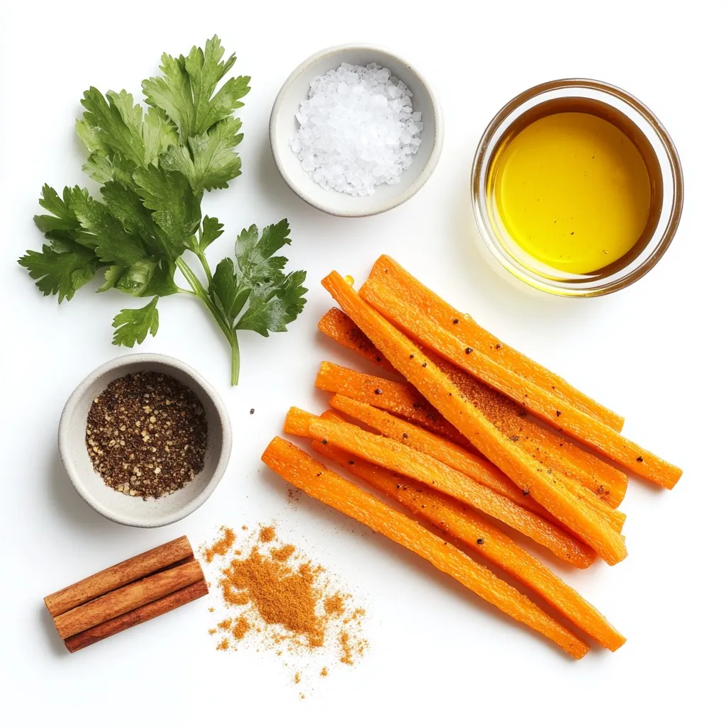Die Hauptzutaten sind einfach zu finden und voller Geschmack. Karotten sind süß und knackig. Wenn du sie in Pommes schneidest, wird die Textur perfekt. Olivenöl hilft, die Karotten schön zu bräunen. Der Ahornsirup gibt ein süßes Aroma.