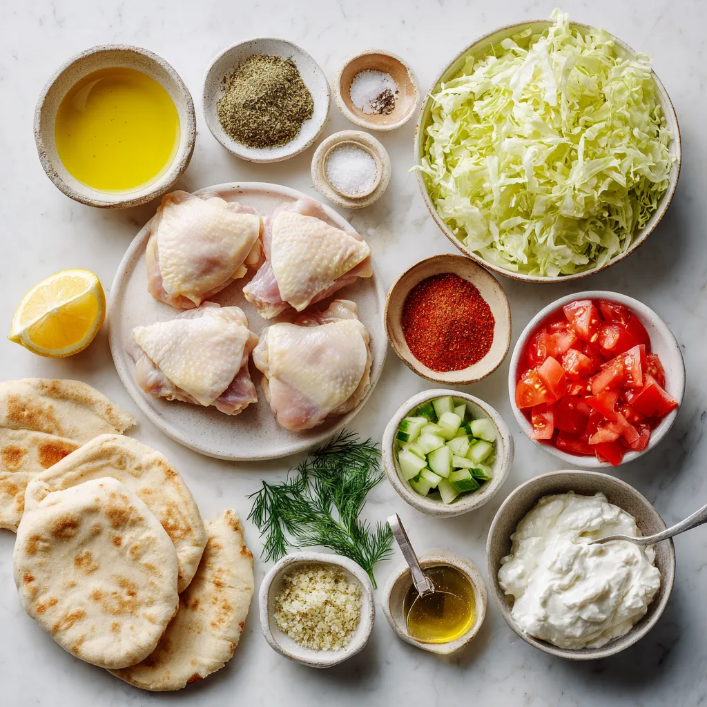 Diese Zutaten sorgen für den vollen Geschmack der Gyros. Hähnchenunterschenkel sind saftig und perfekt zum Marinieren.